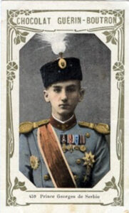 Pomislih o Đorđu nema više, kad pronađoh retuširanu fotografiju: mati Zorka, Kraljica bez krune, preminula pre ustoličenja supruga joj Petra, drži malenog Đorđa, bucmastog i namrgođenog, do nje desno sestra mu Jelena, i otac Petar, budući kralj Srbije, levo tetka Ida, njegova dadilja, gore desno deda Nikola po majci i stric Arsen, s kojim će, uz profesora Miku Alasa biti u prijateljstvu. I kolor fotka iz francuskih čokoladica, prestolonaslednik Đorđe miljenik mladih Evropljana. I moja generacija je skupljala sličice glumaca, fudbalera i životinjsko carstvo. Tu je i fotka sa ocem, bratom i tetkama, on desno. I kolaž: u naponu, i ostareo, posle šesnaestogodišnjeg zatočeništva. Mika Alas i neki članovi Krunskog saveta odvraćali ga  od abdikacije, on ‘jok’. Kad su u biblioteci Dvora ostali sami, Mika je zamolio da mu Đorđe pokloni nalivpero kojim se potpisao. ‘Dao sam mu, pa sam udario u nemušti plač, spolja naprasit i grub, iznutra osećajan i sramežljiv, privio sam se uz Miku, dok je moj brat Aleksandar spolja nežan i umilan, iznutra bezosećajan i grub. Mika me očinski zagrlio, ja sam od plača zaspao u njegovom naručju. Mika je nalivpero čuvao u reveru, i kad smo išli na pecanje, i  po Evropi, i na frontu, s nalivperom smo ga sahranili 1943’. Po abdikaciji, Đorđe se preselio, bez sobara. Išao je u pozorište, na ribarenje, na Mikine džumbus balove, organizovao sedeljke kod sebe. Usledile su poplave, s vojnicima je pomagao poplavljenoj sirotinji. Pa manevri, pa Balkanski ratovi. Pa ranjavanje, pa tifus.