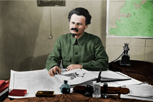 Lav Trocki, 1879-1940., ruski levičar jevrejskog porekla, znao sam ga putem filma ‘Atentator’, zbog Alen Delona, atentatora, i zaboravio. Trocki je sa Lenjinom svrgao Romanove, pa se podžapao sa Staljinom, proteran u Meksiko družio se s Fridom Kalo, slikarkom, koja je s njim varila muža, slikara grdosiju Dijaga Riveru. Ufotkao je čudesnu Fridu. U egzilu je otrovan. Trocki je u vreme Romanovih opozicioni novinar. List ‘Kijevska misao’ šalje ga u Beograd, za dopisnika. Došao je preko Bitolja, 1912., odseo u hotelu ‘Moskva’. Moša Pijade, takođe Jevrejin, Đorđev vršnjak, učio ga srpski! Nadao se Trocki srešće Đorđa. No, Đorđe je sa Alasom i stricem Arsenom na frontu. I tada smo imali Tajnu službu, kao sada BIA. Proterali su Trockog, Srbi su vezani za Romanove, kao sada za Putina. A pisao je o Pašiću: ‘spašava sina od rata lažnim lekarskim uverenjima, loše govori ruski, francuski, nemački, loše i srpski. A tek njegova nepismena, podla štampa’. Trocki odlazi u Bugarsku, pa u Rumuniju, vraća se 1914., jedva da je naše straže na Dunavu. Dočekao ga opet Moša, preko laufera čuli Aleksandar nazvao Đorđa perveznjakom. Kad su bili deca, njemu i Pavlu pokazivao je svoj ud, i lomatao njime: Gledajte kakvu zverku vaš bata ima međ’ nogama! Priča se i ljubovišeš s Mikom Alasom. Nazvao ga i anarhistom, Đorđe je kao kadet u Rusiji s tetkama izvukao iz zatvora anarhistu, brata svog druga. Đorđe je Aleksandra nazvao austrofilom, i trovačem: Pokušali ste ti i Apis da me otrujete. Priča se, Ti ljubovišeš sa svojim vaspitačem-Lujom Vojnovićem. Umalo da se pobiju, kao biblijska braća Kain i Avelj. Otac ih razdvojio. Naša posla! Đorđe nije otišao sa ocem, bratom i rođacima u Rusiju, na svadbu sestre Jelene jer je ruski car priznao aneksiju Bosne.