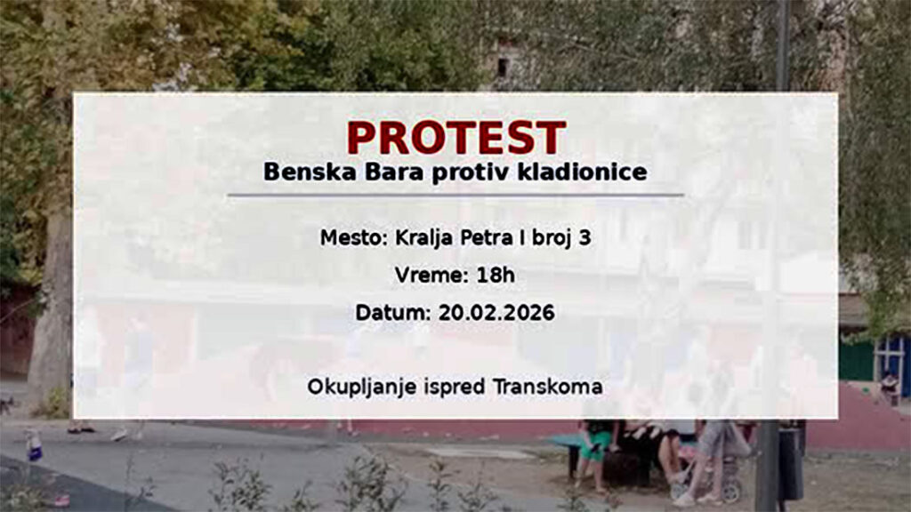 Protest je zakazan za petak 20.02.2026. u 18h ispred Transkoma kod Toplane u Benskoj Bari, ul. Kralja Petra I br. 3.
