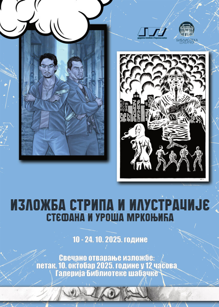 U saradnji sa Udruženjem likovnih stvaralaca Šapca, u petak, 10. oktobra 2025. godine, u 12 časova, u galeriji Biblioteke šabačke, svečano će biti otvorena Izložba stripa i ilustracije Stefana i Uroša Mrkonjića. Na otvaranju će govoriti Jelena Podgorac Jovanović, direktorka Biblioteke šabačke, dr um. Dragan Marković Markus, direktor Udruženja likovnih stvaralaca Šapca i autori. Imajući u vidu da se izložba realizuje povodom obeležavanja Dana Biblioteke šabačke, u okviru programa će biti dodeljene i nagrade najboljim čitaocima. Svi zainteresovani sugrađani će moći da pogledaju postavku do 24. oktobra 2025. godine.