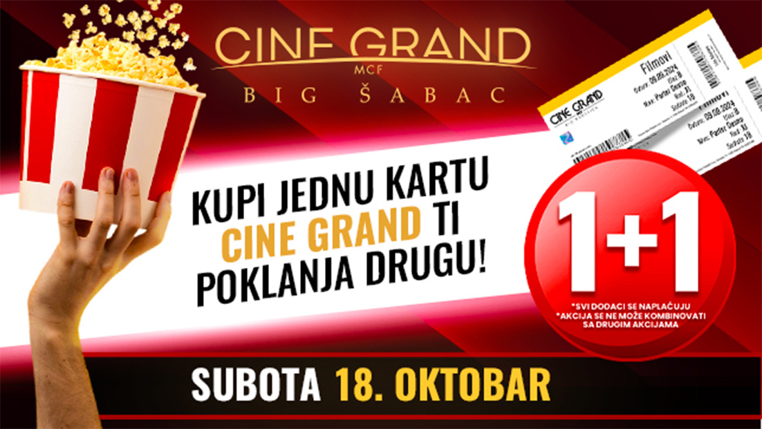 – 18. OKTOBRA UZ JEDNU KUPLJENU KARTU POSETIOCI DRUGU DOBIJAJU GRATIS –