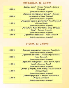 10.00 h – „Čarolija novogodišnjeg fenjera“ – GLjiljana Krsmanović i Ivana Janković (radionice za niže razrede)