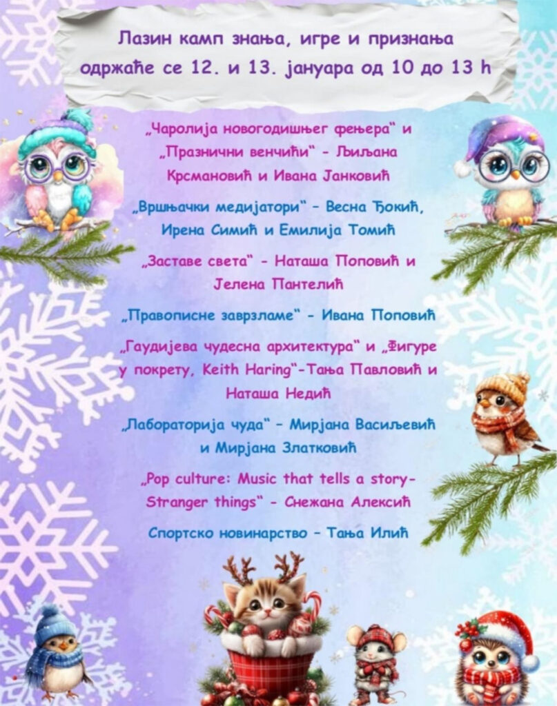Lazin kamp znanja, igre i priznanja održaće se 12. i 13. januara od 10 do 13 h u OŠ „Laza K. Lazarević“.