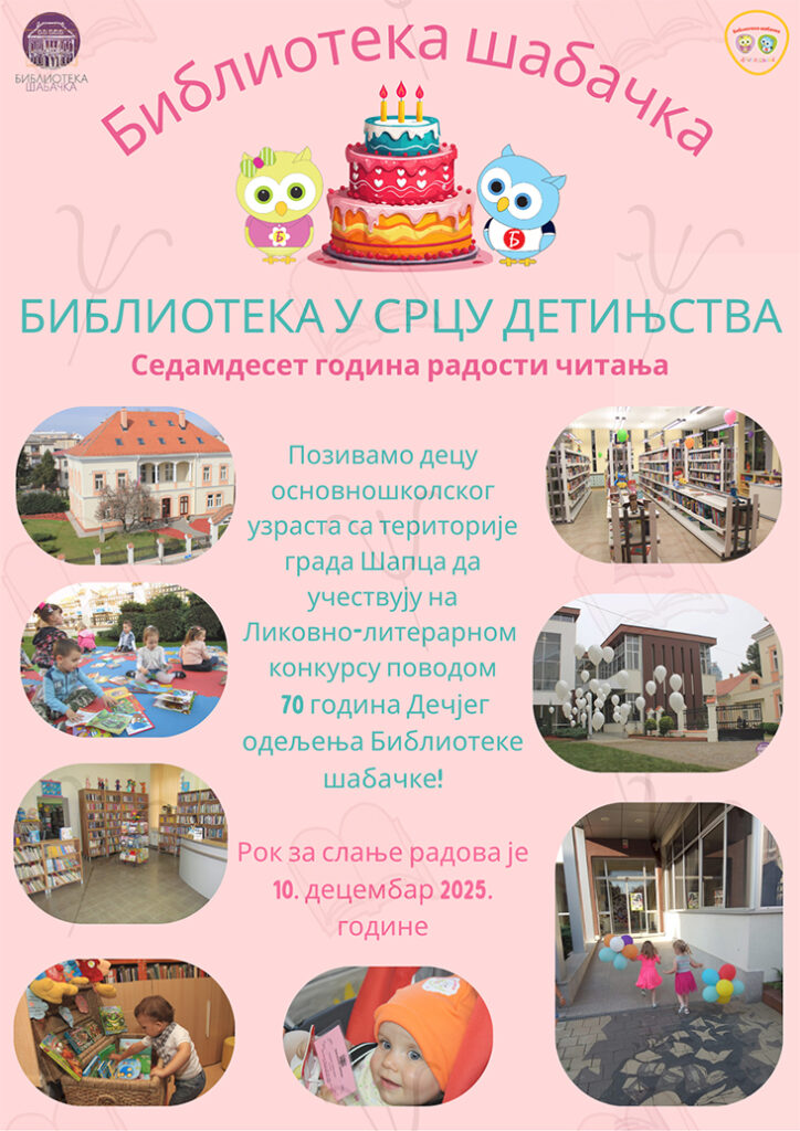 Biblioteka šabačka raspisuje Likovno-literarni konkurs „Biblioteka u srcu detinjstva – sedamdeset godina radosti čitanja“, povodom 70. rođendana Dečjeg odeljenja.