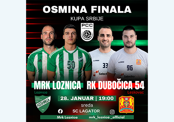 Dok drugi deo šampionata u rukometu, počinje polovinom februara, vreme je za rasplet u osmini finala Kupa Srbije. U Loznici, snage će odmeriti MRK Loznica i RK Dubočica 54 iz Leskovca.