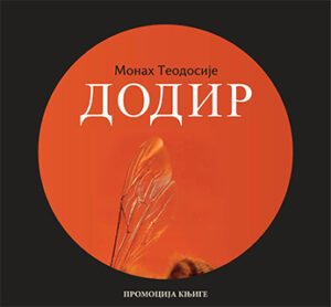 Po blagoslovu monaha, oca Teodosija Hilandarca, prof. Boško Milosvljević, reditelj po završenoj projekciji filma Sveti Jakov Tumanski, predstavlja knjigu ,,Dodir“, monaha Teodosija Hilandrca.