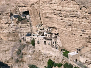 Iz Vitlejema, desetak kilometara udaljenog od Jerusalima, nakon prolaska „ček pointa“ i visokog zida koji deli Palestince i Izraelce, grupu „Sion travel“ hodočašće je 10. septembra odvelo u Manastir sveti Georgije Hozevita. Uz molitvu i novozavetnu priču krenulo se ka 30 km udaljenom Jerihonu, koji pripada Palestini i jedan je od najstarijih mrtvih gradova na svetu jer postoji od kada je 1250. g. p. n. e. 12 jevrejskih plemena ušlo na to područje. Kraj Maslinske gore, sa desne strane puta, promicale su slike proširivanja saobraćanice i zgrade u izgradnji. Pritisak u ušima najavio je potom naglo spuštanje terena, a pejzaž Judejske pustinje – premrežene električnim stubovima – remetila je poneka beduinska limena udžerica.