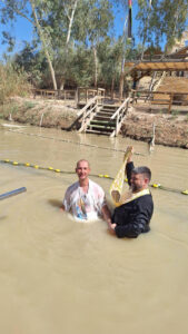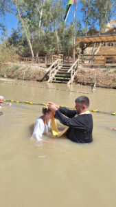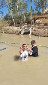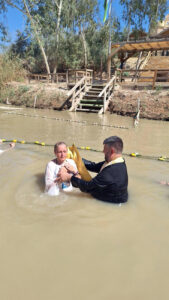 Posle Gore Kušanja usledilo je pogruzenje u rečici Jordan, „krstionici sveta“. Tu prirodnu granicu istoimene države i Izraela, danas, na izraelski i jordanski deo dele bove i čuvaju vojske dva naroda. Novozavetna priča kaže da je Jovan Krstitelj tu krstio svoga 30-godišnjeg rođaka i učitelja Isusa, a u ime sećanja na taj događaj i vernici pristigli iz Beograda – među kojima beše i četvoro Šapčana – priključili su se milionima onih koji su tokom vekova učinili isto. Obučene u bele stihare – ukrašene Isusovim likom – otac Ivan je jedno po jedno u ime Oca i Sina i svetog Duha tri puta potapao u vodu, a znatiželjnici sa jordanske strane sve su pratli i telefonima snimali.