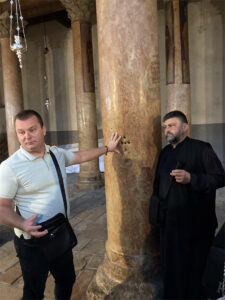 Povratak u hotel umesto sat i po trajao je duplo duže, jer su na jerusalimskim ulicama ogromne gužve bile zbog zatvaranja tri od pet kontrolnih punktova između Jerusalima i Vitlejema. Sutradan, na veliki praznik Usekovanije, grupa „Sion travel“ rano je krenula na liturgiju i pričešće u vitlejemsku Crkvu rođenja Isusa Hrista. Ta svetinja, jedno od dva najvažnija mesta u hrišćanskom svetu, uzdiže se nad pećinom u kojoj je Deva Marija na svet donela Božanskog Mladenca, po jevrejskom običaju povila ga u duge povoje, položila u jasle i – kao što je anđeo zapovedio – dala mu ime Isus.