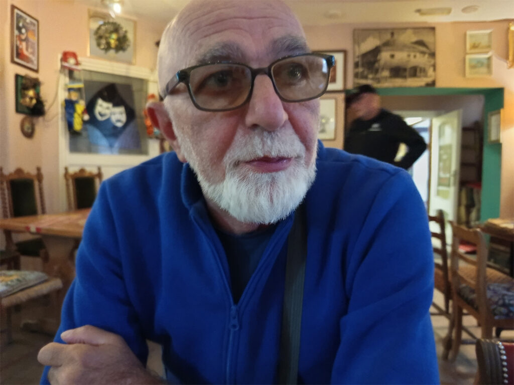 – Ovo doživotno izgleda kao da me kune. Hoće da umrem, koliko ove godine. A što se vizionarstva tiče ja imam viziju ali on ima televiziju. Imam još jednu viziju: policija će, kad-tad, izaći sa Univerziteta jer nije to za njih. E, sad, verovatno se pitate zašto sa sobom uvek nosim ovaj transparent? Pošto sam čovek u godinama a da biste znali da sam muško od njega se ne odvajam. Rođen sam s njim, živim s njim, putujem s njim, svašta s njim… Pre nekoliko meseci, na protestu u Šapcu, ja i vršnjak idemo kad jedna gospođa mi kaže „Sram te bilo, đubre jedno ti tako o našem predsedniku“! Pogledam i kažem joj: Gospođo pa vi ste njega prepoznali! Ona gleda zbunjena a ja dodam: Hoćete li da ga poljubite? Ne htede!