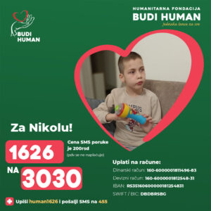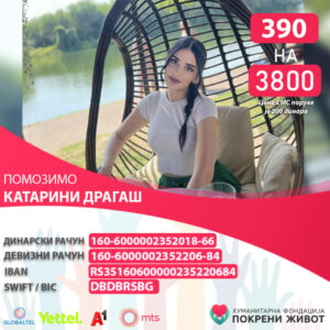 Katarini je potrebna pomoć za operaciju u Turskoj (fondacija „Pokreni život“, 390 na 3800), dok se Nikola priprema za operaciju tumora na mozgu (fondacija „Budi Human“, 1626 na 3030).