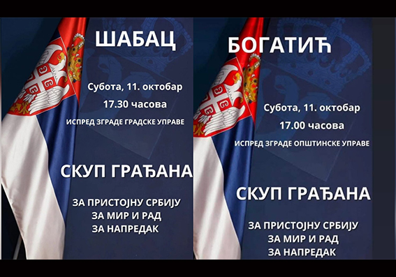Skupovi “Građani protiv blokada“ održaće se, danas, u subotu 11. oktobra sa početkom u 17 i 17.30 časova kao podrška srpskom narodu na Kosovu i Metohiji, na preko 200 lokacija širom Srbije a u Mačvanskom okrugu predviđeno je da se održe u: