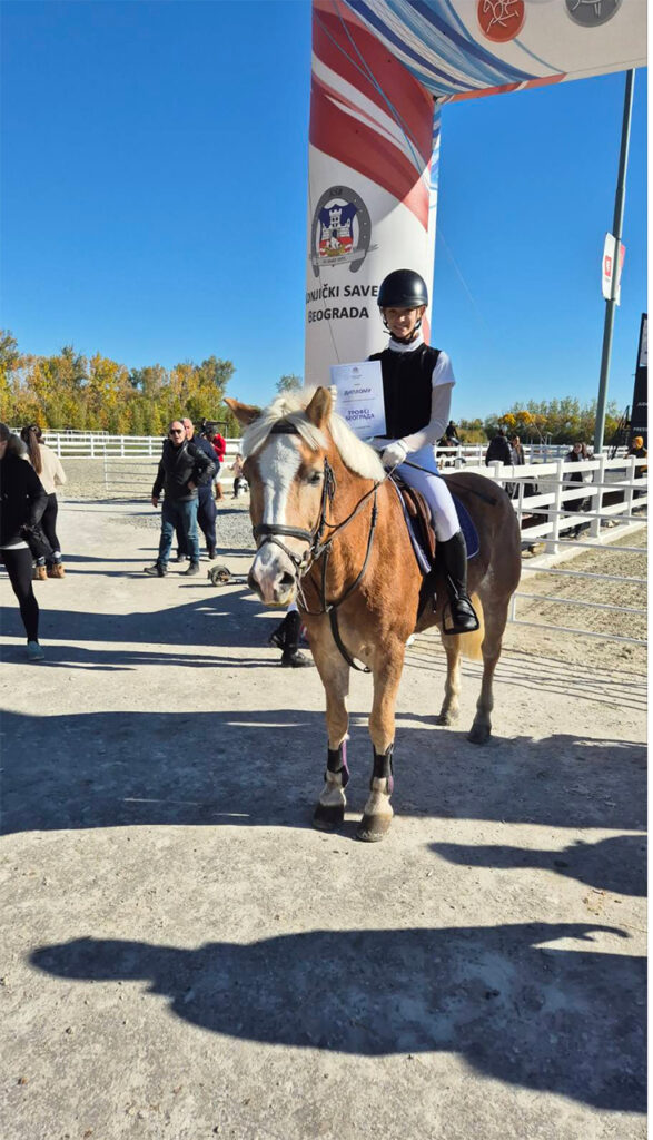 Juče je održan drugi dan turnira za Trofej Beograda u preskakanju prepona. Takmičari našeg kluba su se vratili sa tri zlatne medalje iz predutakmiča i sa četvrtim mestom preključerašnje pobednice Jovane Arsenović. U predutakmicama su nastupale i osvojile zlata Jana Koviljac na Lakiju, Olga Kovačević na Lalu i Lena Kijurina na State of Haos… Jana i Olga su uz peključerasnju pobednicu Viktoriju Lazić, naše najmlađe takmičarke i od njih tek očekujemo u budućnosti odlične rezultate. Nakon njih, u utakmici za Trofej Beograda, nastupila je preključerašnja pobednica Jovana Arsenović sa Kingom, i ponovo bez greske išla osnovni parkur, ali je nažalost u baražu ostala bez medalje i zauzela četvrto mesto.