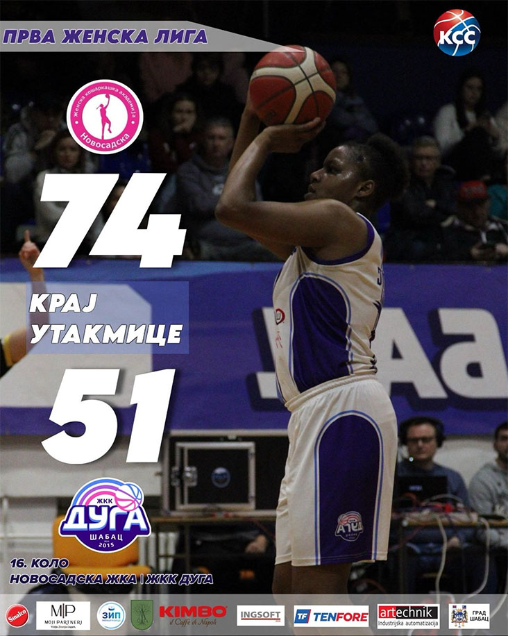 Konačan rezultat 16. kola Prve ženske lige za ŽKK “ Duga” je 74:51 u korist Novosadske ekipe.